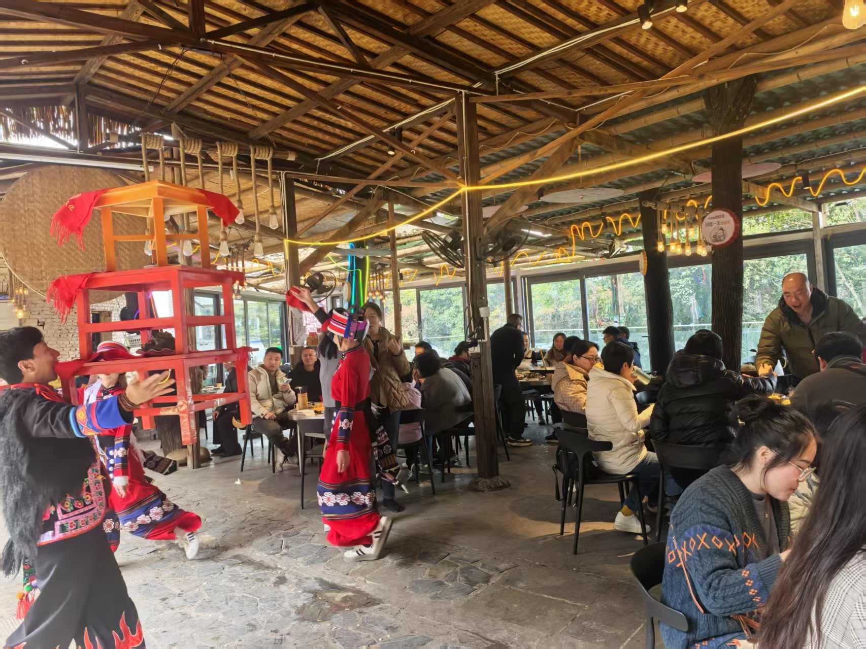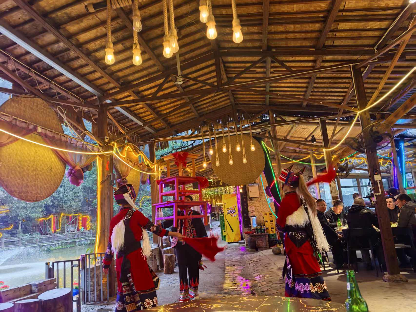 在南山花中溪,您能亲手采摘新鲜的蔬果,赏杜鹃花、吃柴火鸡,泉水鸡,土鸭,土鹅,土鸡;烧烤,鼎锅炖腊猪蹄炖萝卜干、观看草坪婚礼,喂鸽子,围炉煮茶,孔雀园,传统汤锅、鼎锅炖、羊肉汤锅、炭烤仙女山牛肉、大洪湖柴火青椒鱼、鲜货土猪烤肉、特色江湖菜。自家熏制的土猪腊肉、香肠、腊排骨。玩CS,玉石麻将棋牌60台、乒乓球、羽毛球、台球、K歌、狼人杀、剧本杀。山泉活水鱼塘垂钓、独立草坪多人互动。高山流水敬酒文化、云南特色打跳、竹竿舞…主打吃喝玩乐一条龙,相聚不转场!