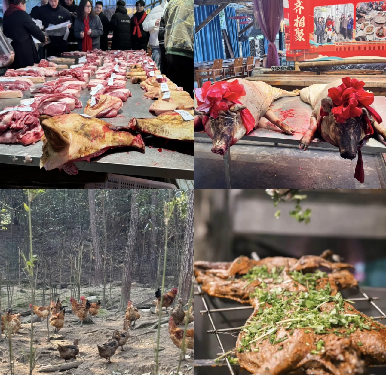 传统汤锅、鼎锅炖、柴火鸡、烤全羊、羊肉汤锅… 还有鲜货土猪烤肉、杀年猪刨猪汤!自家熏的土猪腊肉、香肠、腊排骨,香到流口水!