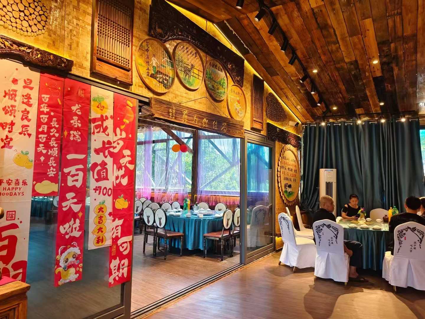 花中溪坐拥得天独厚的景观优势,室内宴会厅雅致大气,搭配暖色调灯光与定制花艺,既显庄重又不失温馨,可容纳20-200人不同规模的宴会需求;室外临溪雅座与庭院区域,春有百花争艳,夏有绿荫蔽日,秋有桂香浮动,冬有暖阳融融,无论是长辈寿宴的福寿绵长主题,还是年轻人青睐的清新森系、潮流个性风格,都能完美适配,让每一张合影都成为定格美好的风景。