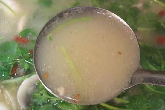 吃完烤全羊还可以喝点羊杂汤,羊杂火锅喝了可以暖胃,汤味道醇厚,清汤里有羊杂,吃完还可以下一些配菜,青菜住在羊杂火锅里也很入味。