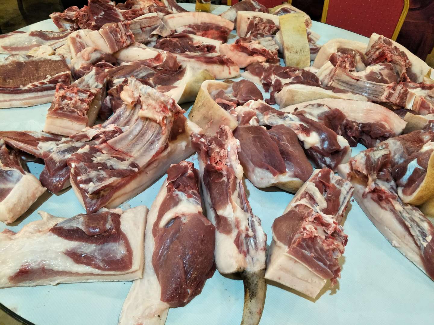 选用玉米、麦麸、红薯、南瓜等采用传统方法饲养的生态猪,通过熟食慢养,保证养殖周期达到12个月,养殖过程中坚持不使用生长调节剂和饲料添加剂。