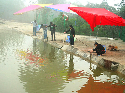 1)、在花中溪泉水自养的水塘,垂钓,吃农家鱼。三五朋友一起喝喝茶。