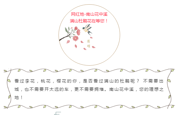 三月,春暖花开,看过李花,桃花,樱花的你,是否看过满山的杜鹃呢? 不需要出城,也不需要开太远的车,更不需要拥堵。南山花中溪,您的理想之地!