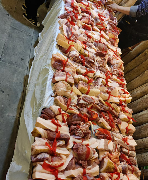 感谢平安公司VIP客户答谢会,选择花中溪:杀年猪,抽奖活动,火热进行中。凡参加的客户,每人可领取“彭水土猪儿”肉肉。