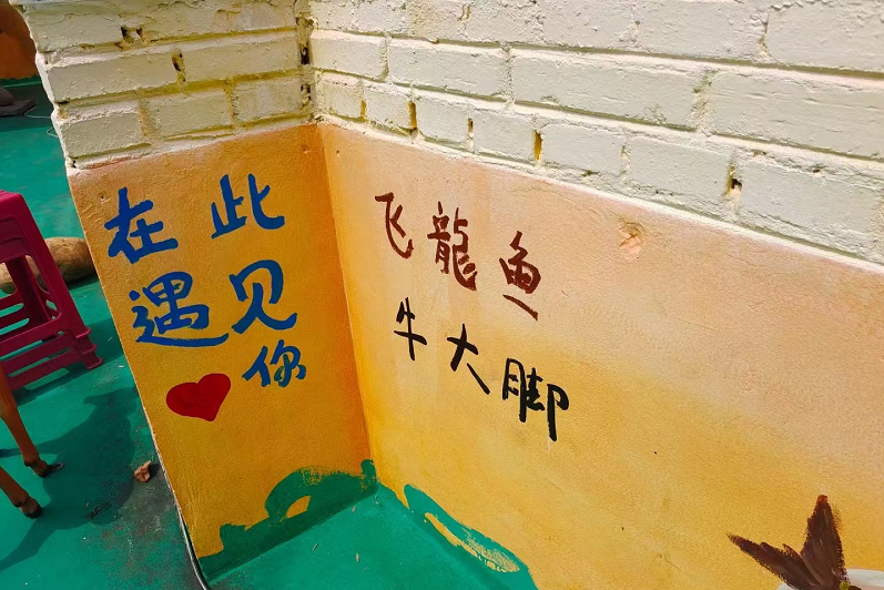 5、原生味的墙画,更是成为打卡拍照的好地方!